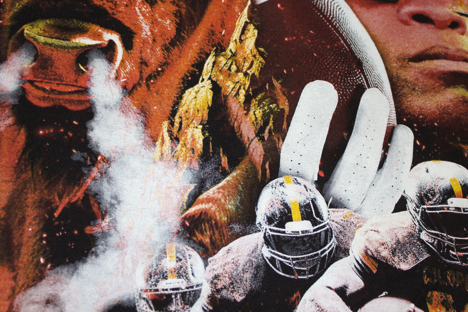 -Screenprinted Oversized front & back graphic. Image is 17inx25in printed the same size across all sizes. This means for Larges & Mediums the graphic is often printed up to the collar & to the very bottom edge. this is an oversized print.