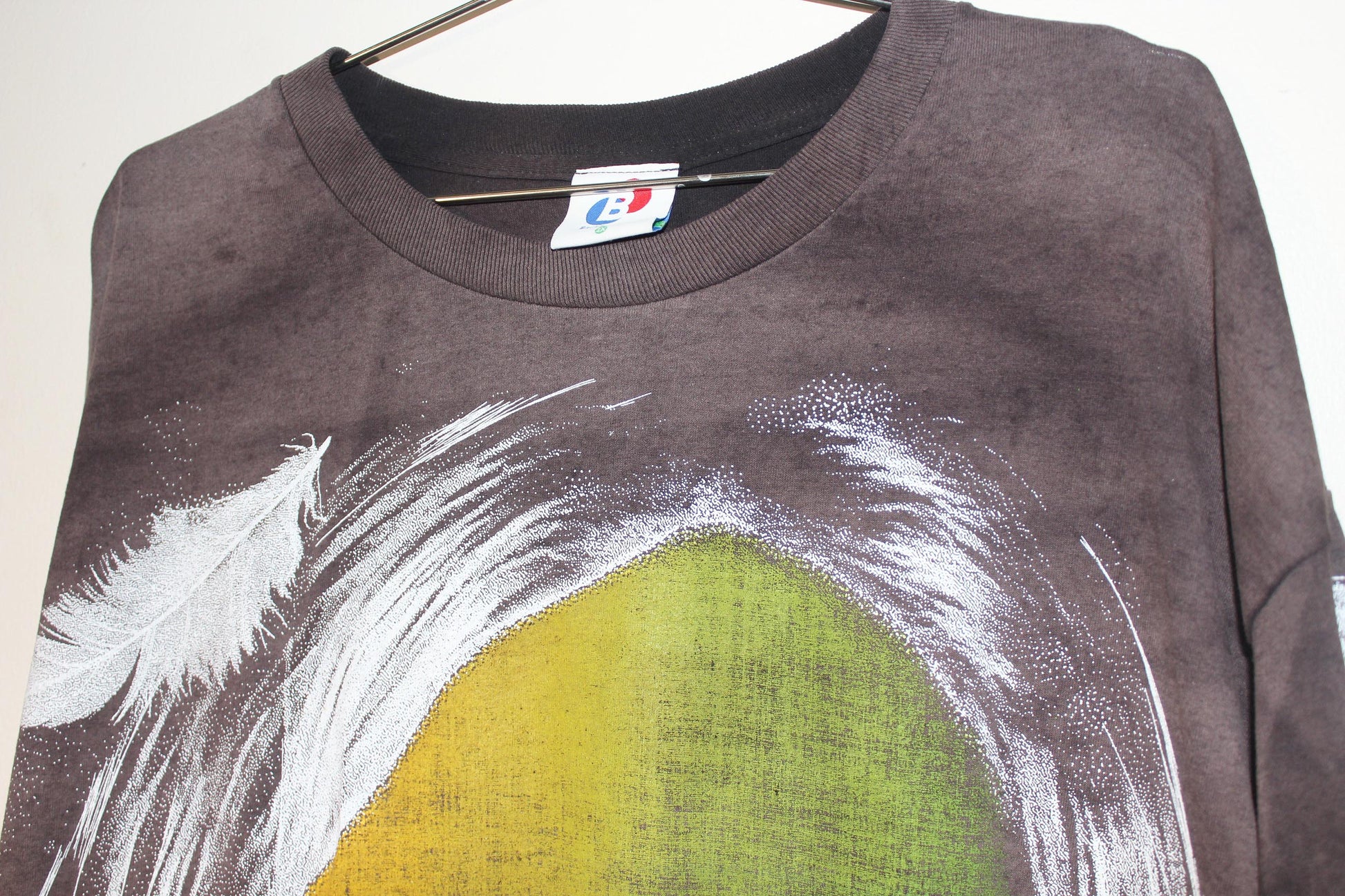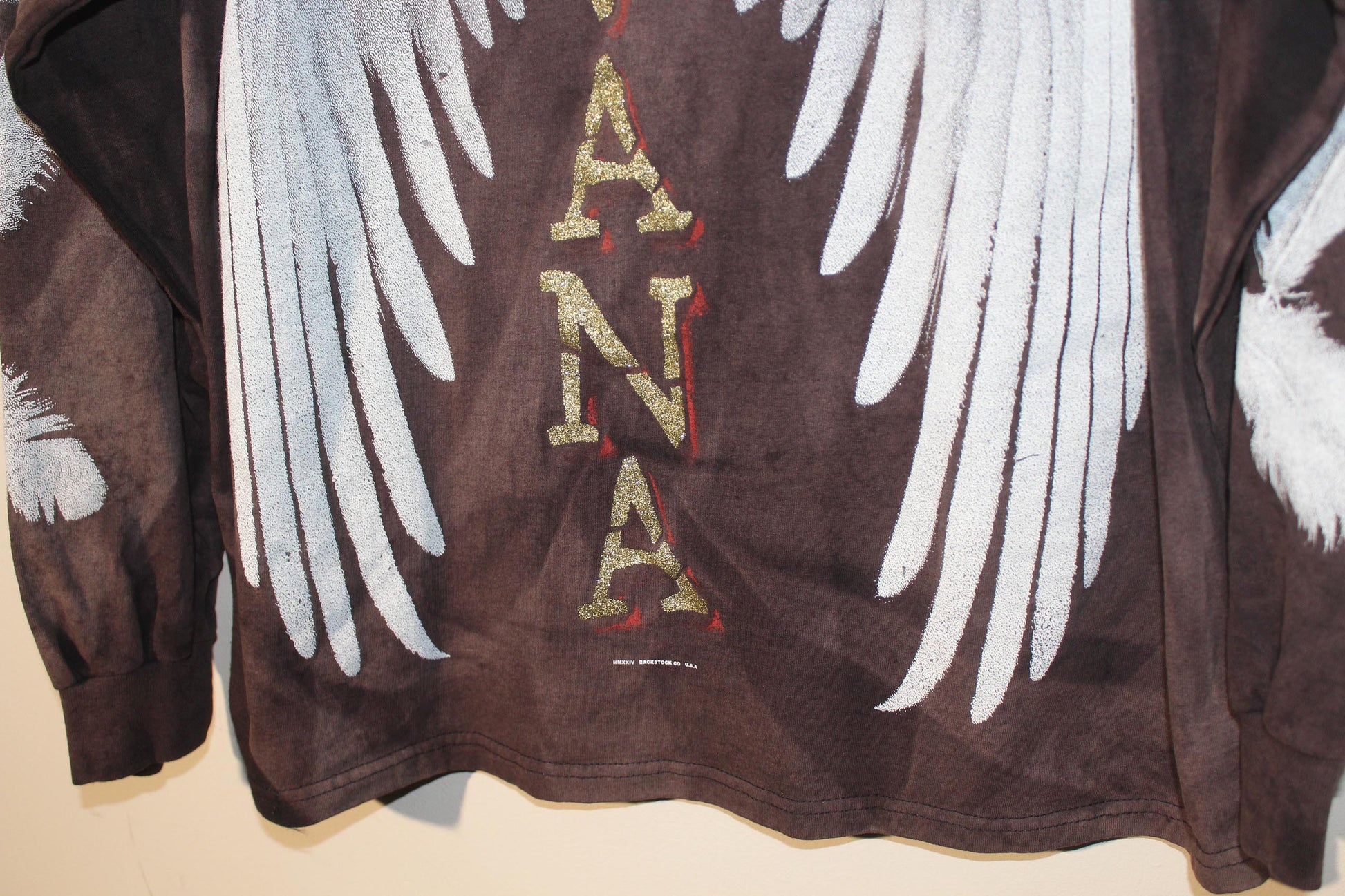 This is a unique item. Extra time and care is spent to fade or print & shirt outside of my studio in Denver for an extended period of time. Wind, rain, sun & the elements have aged the shirt to its current state in photos. The item has been prewashed several times to ensure it's clean & ready to wear.